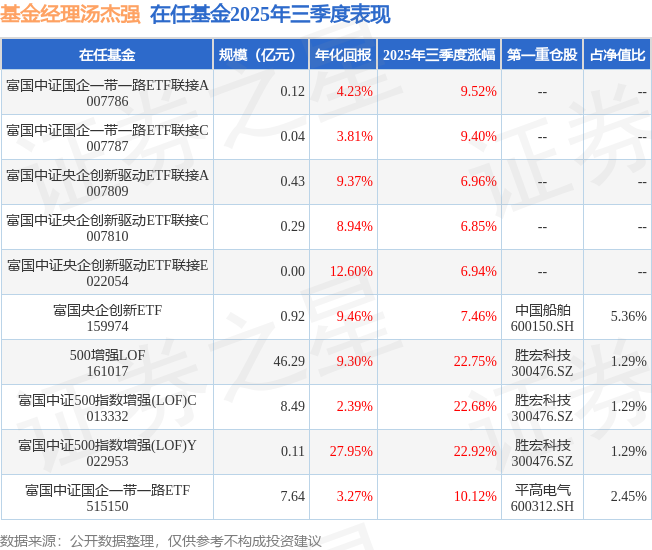 本站消息长江云配,日前富国中证国企一带一路ETF基金公布三季报,2025年三季度最新规模7.64亿元,季度净值涨幅为10.12%。